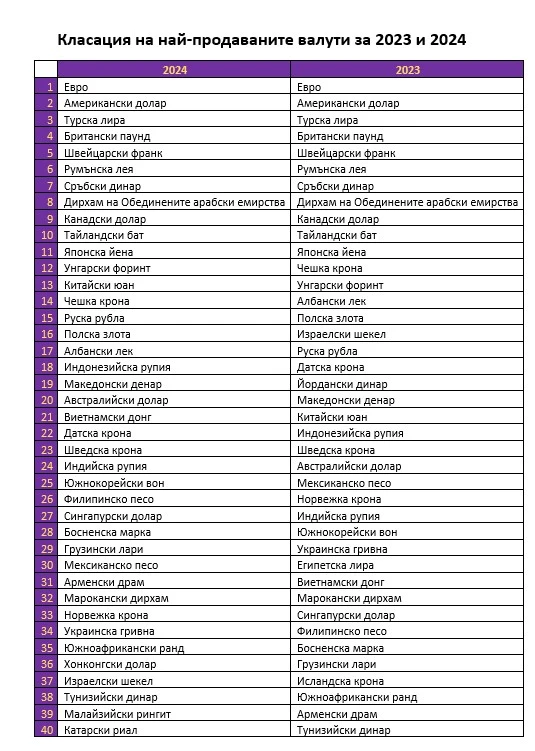 Класация на най-продаваните валути у нас за 2023 и 2024
