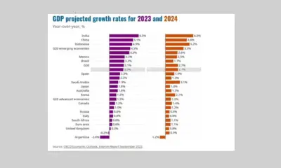 Но ОИСР леко понижи прогнозата за Германия, най-голямата европейска икономика, до 0,1% ръст и заяви, че БВП на Япония ще се свие с 0,1%. Икономиката на Аржентина ще има по-дълбоко свиване от 4 %.