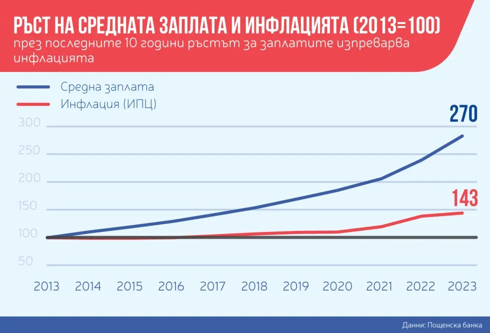 „Напоследък също много се говори и по темата за инфлацията и как тя изяжда реалните доходи на населението. Нека не забравяме, че храните и енергоносителите имат най-голям дял в потребителската кошница и съответно нарастването на техните цени е основният „причинител“ на инфлация. За последните 10 години реалните доходи на населението са се увеличили – дори и през последните две силно инфлационни години България беше една от малкото страни в ЕС, в която имаше двуцифрен ръст на средните възнаграждения и реален ръст на доходите“, допълва г-жа Димитрова.