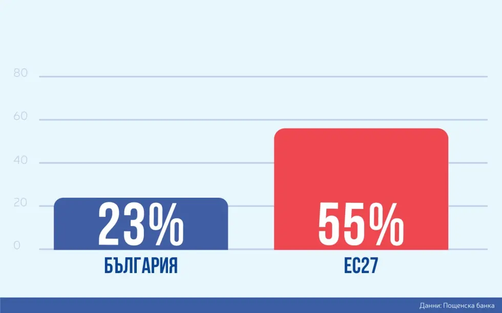 Данните показват още, че дългът на домакинствата към БВП в България е 23%, докато същото съотношение за 27-те държави от Европейския съюз е 55% - два пъти и половина по-малко, което означава, че не може да говорим за свръхзадлъжнялост на населението в страната, а точно обратното. За това спомага и спадът на безработицата.