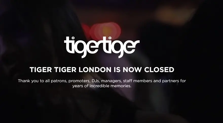 Tiger Tiger в Piccadilly Circus затвори врати, като написа на уебсайта си, че вече не работи.