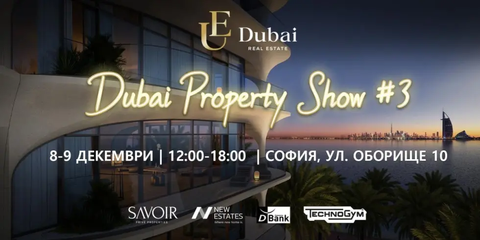 В третото издание на Dubai Property Show, което се провежда на 8 и 9 декември на ул. Оборище 10 в София, Unique Estates представя и новия си партньор в Обединените Арабски Емирства - Savoir Privé Properties. В рамките на изложението представители на двете компании ще предоставят експертни съвети и насоки за инвестиция в имоти с висока доходност в престижния международен бизнес център Дубай, както и начини за защита на спестяванията от инфлацията в България.