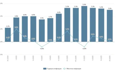 Разходите за регулирани енергийни продукти са нараснали допълнително до 5,2 на сто спрямо 3,2 на сто, а ръстът на цените на недълготрайните стоки се е забавил до 0,6 на сто от 1 на сто.