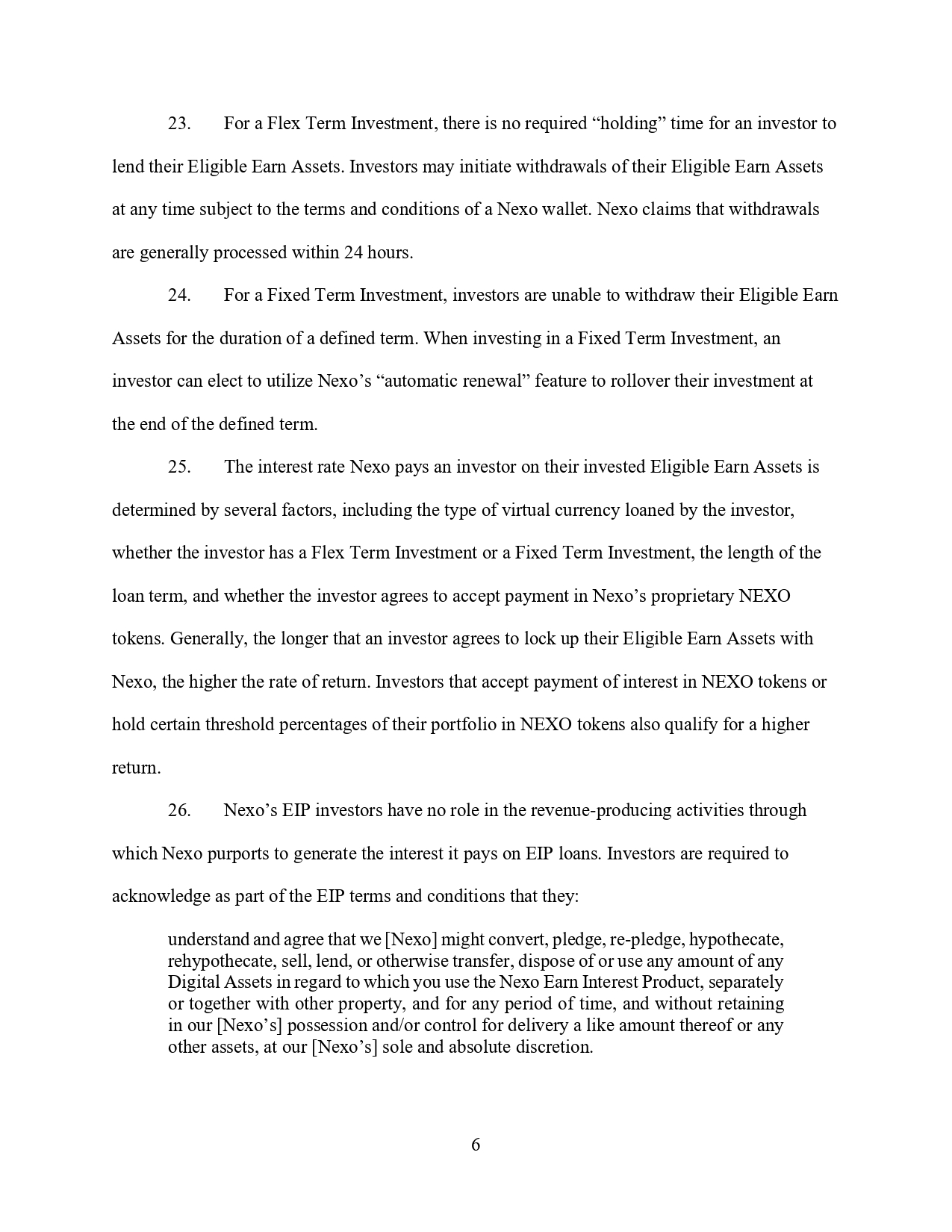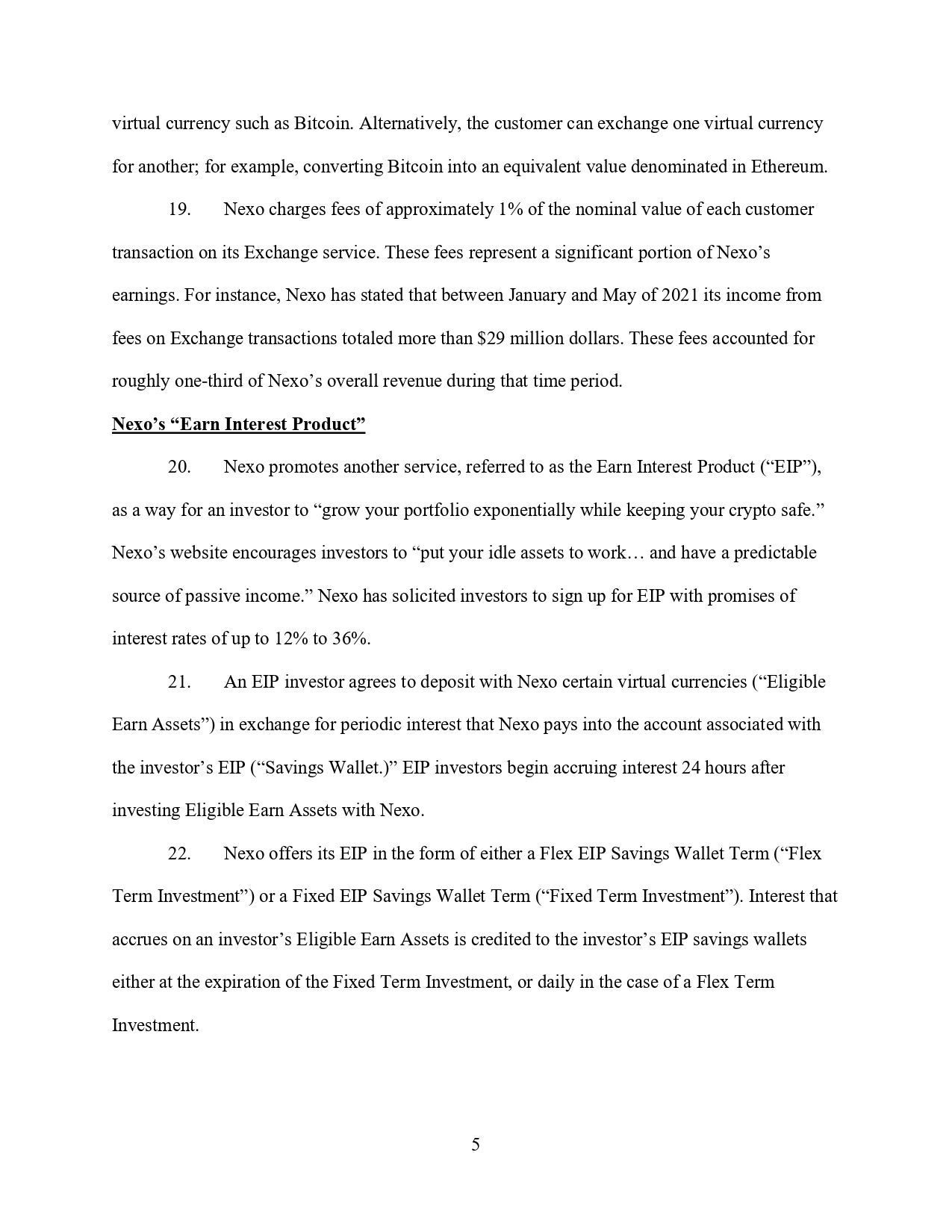 Чрез тези твърдения Nexo създавали у клиентите заблуждаваща представа, че инвестициите им са нискорискови и че те сключват сделки с дружество, което е напълно лицензирано и работи в съответствие с приложимите норми. Всъщност е действала незаконно в Ню Йорк и е участвала в измамни практики.