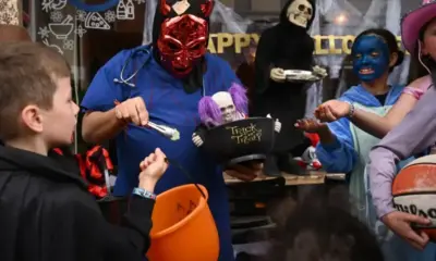 БГНЕС Двамата раздаваха бонбони и лакомства на малките посетители, които бяха облечени в тематични костюми.