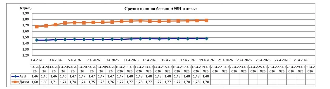 Средната сеца на дизела остава 1,78 евро за литър, а на бензина А95 1,48 евро за литър.